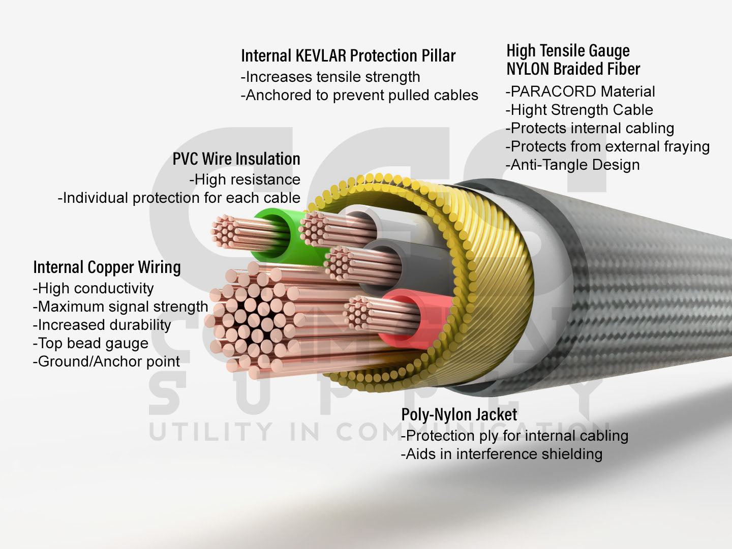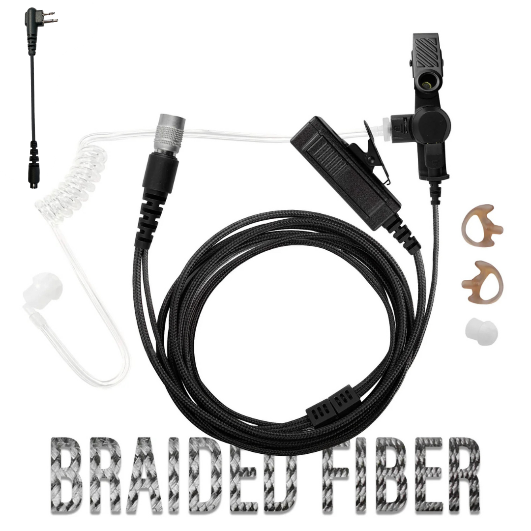 Tactical 2 Wire Comms Kit w/ Braided Fiber Cabling. The 2 wire configuration is optimal for tactical outfitting. Offers: diversity in layout, detangling design, ideal when wearing tactical/exterior carrier ballistics vest, MOLLE system. This kit offers 2 cable length options. Standard version offers versatility as the microphone cable length can be used for Patrol, Tactical, Dignitary Protection/Undercover. The Short version is ideal as a dedicated Patrol/Tactical comms setup. This Paracord Nylon material is high strength, lightweight, and Velcro/snag resistant. This complete Tactical Listen & Talk kit includes: