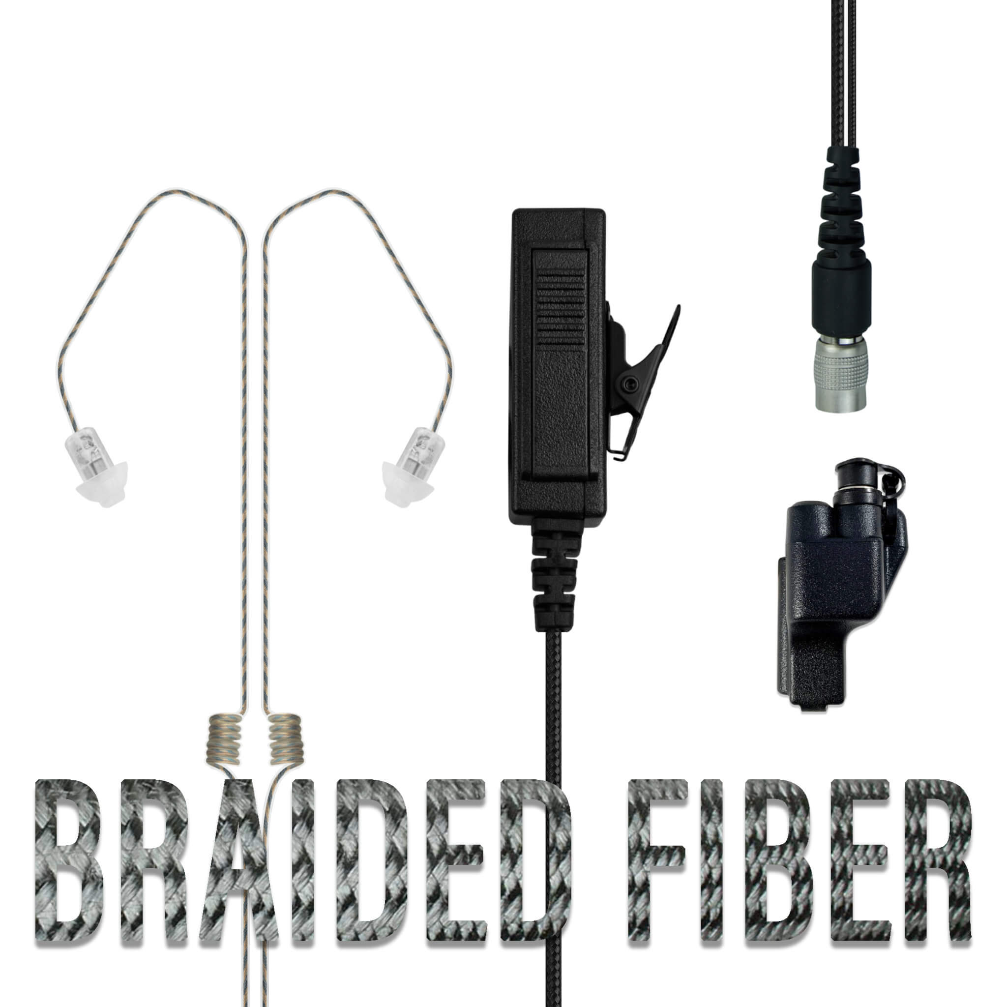 Braided Fiber Tactical Mic & Dual Ear Invisible Series Tubeless Earpiece Kit w/ Quick Disconnect (Hirose) - EF Johnson All 51, 5000, 5100, 7700, 8100 Series, Ascend, Kenwood VP400, VP600, VP900 & More