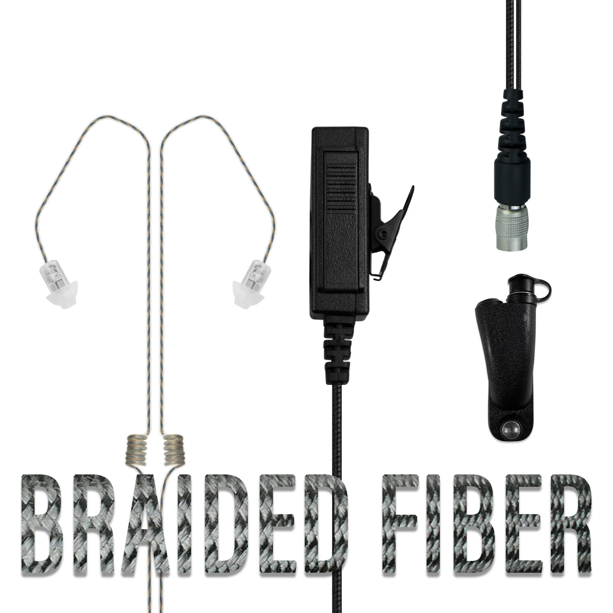 Braided Fiber Tactical Mic & Dual Ear Invisible Series Tubeless Earpiece Kit w/ Quick Disconnect (Hirose) - Motorola: APX (Apex) Series, XPR Series, SRX2200, & More