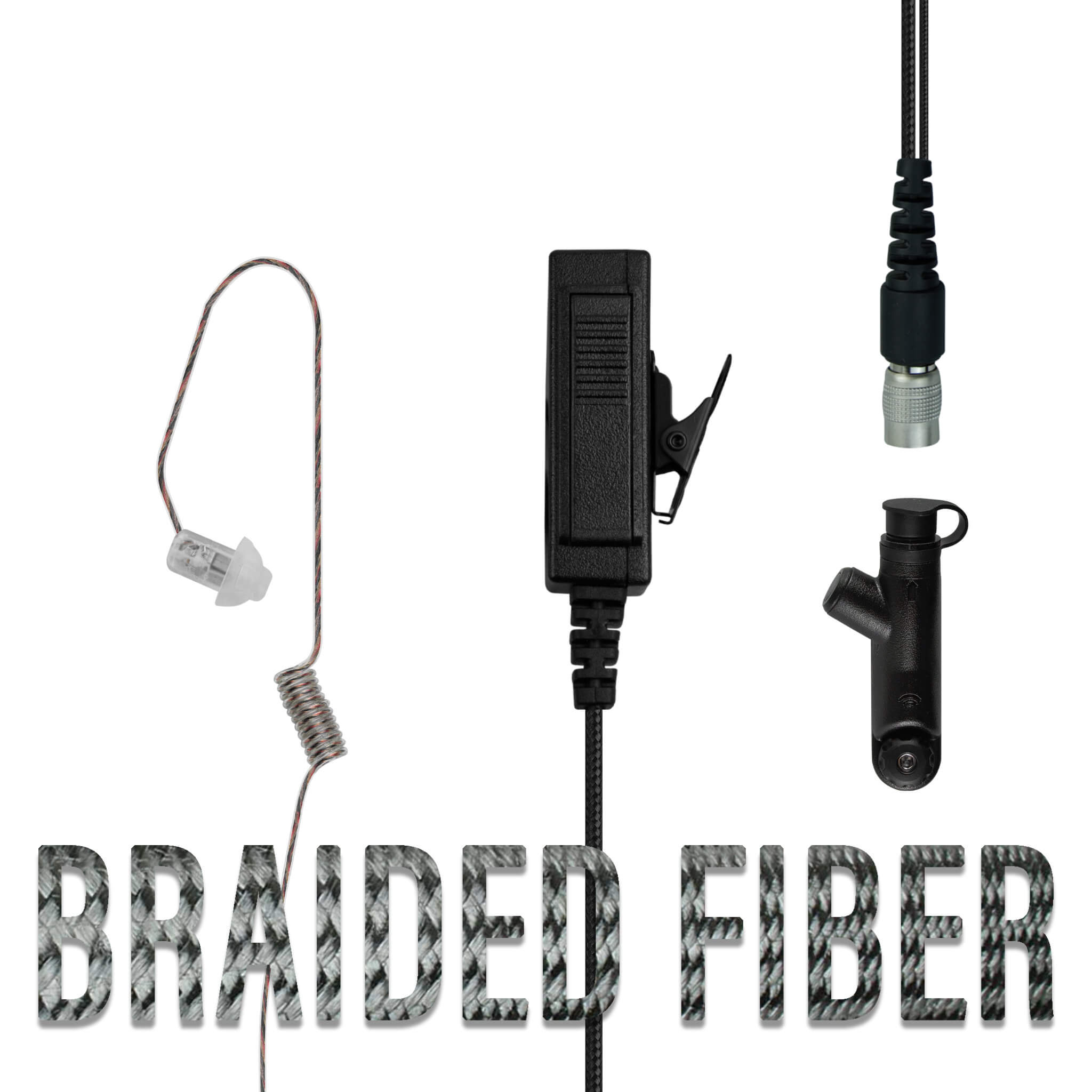 Braided Fiber Tactical Mic & Invisible Series Tubeless Earpiece Complete Kit w/ Quick Disconnect (Hirose) - Motorola R7, MXP600, ION & N Series