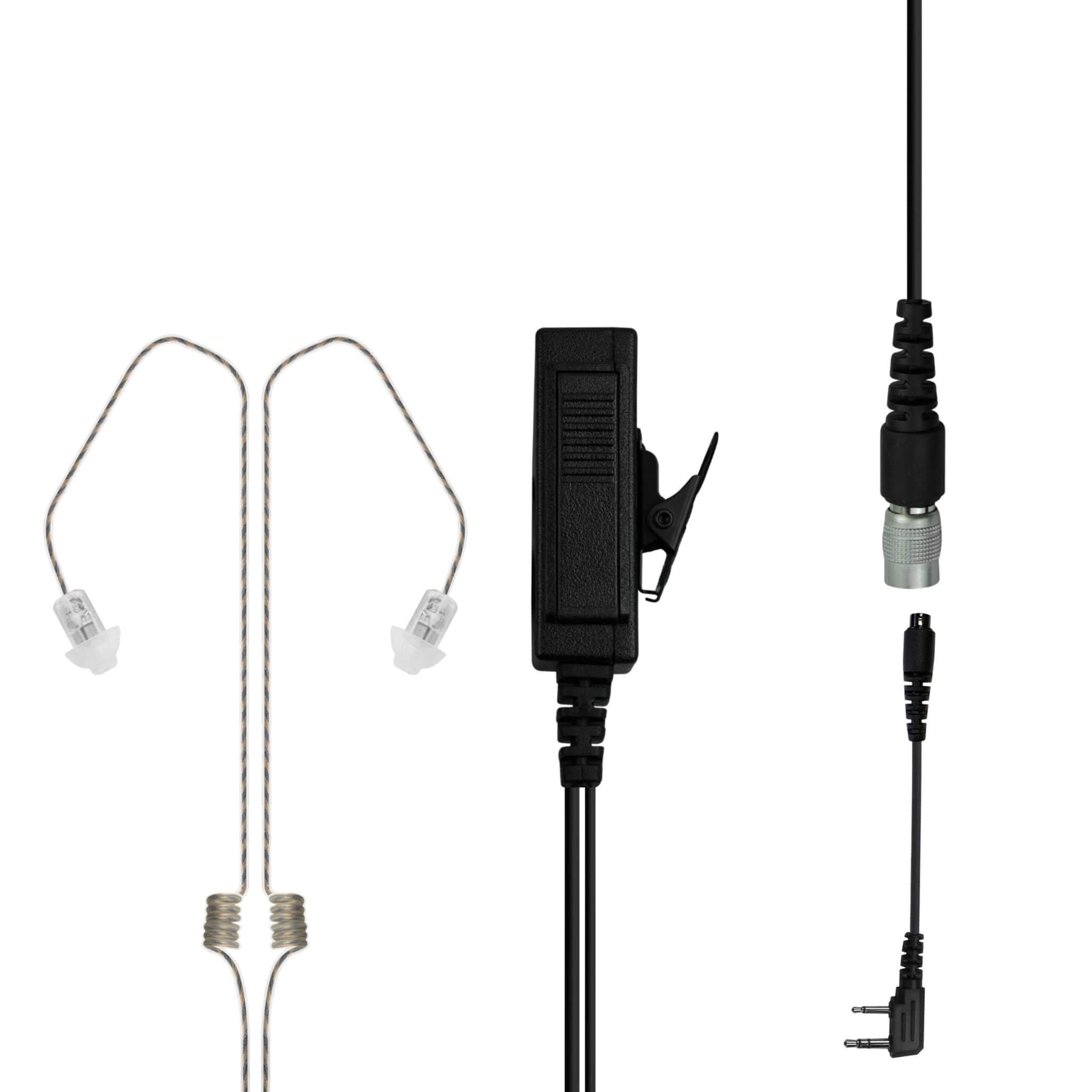 The Dual Ear Invisible Tubeless Earpiece & Patrol Mic Kit offers versatility with its 3.5mm earphone base. This allows you to connect any 3.5mm earpiece/ear pro into the system. Whether you want to deploy a different earpiece, consumer ear buds for undercover operations, or incorporate ear pro(add't cable required), this kit has you covered. The Invisible Tubeless Earpiece can also be used on conventional speaker mics with a 3.5mm jack.