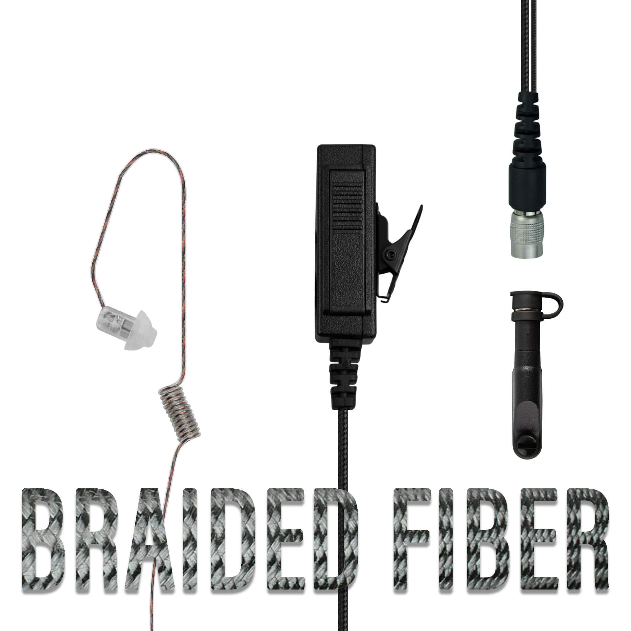 Braided Fiber Tactical Mic & Invisible Series Tubeless Earpiece Complete Kit w/ Quick Disconnect (Hirose) - Harris/Tait TP3000/7110/7100/8000/9000 Series
